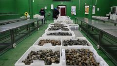 En decembro poxou 16.000 quilos de bivalvos; no porto carrilexo, a campaña de Nadal vai vento en popa con máis de 100.000 quilos poxados