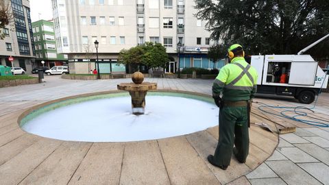 Sucedeu na Praza da Cruz Vermella e operarios municipais tiveron que drenar os condutos