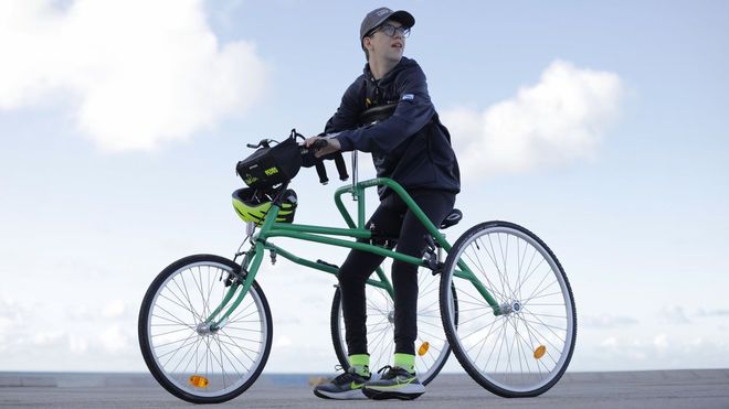 «A el as carreiras danlle a vida, válenlle por mil terapias», dice la madre. Ya participó en el maratón de Nueva York, y será de las primeras personas con discapacidad en correr la prueba El Cruce