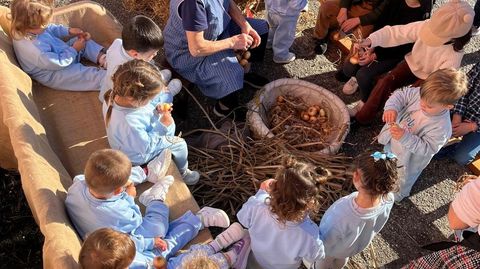 Na escola pública de Ombre, a única unitaria que sobrevive en Pontedeume, os nenos aprenden a través do xogo e en pleno contacto coa natureza