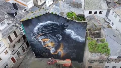 09 oct 2025 . Actualizado á 17:50 h.Pendente do ceo e a choiva, o fotógrafo e muralista Dani Caxete (Viveiro, 1975) ultima estes días o encargo da Xunta de Confrarías da Semana de Viveiro para realizar un mural sobre o Cristo dá Agonía, unha das tallas máis destacadas do patrimonio relixioso e artístico local. A obra, que mide ao redor de 14 metros de ancho por 16 de alto, está a ser pintada na contorna da Avenida de Lourdes, preto da Praza de Santa María.