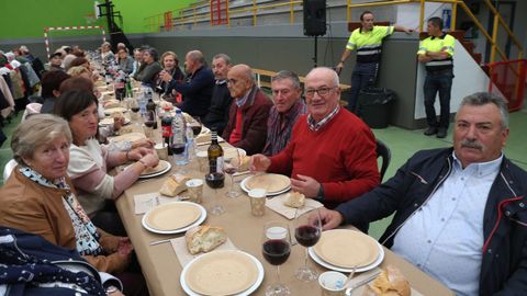 Despois da misa, o grupo musical tocou unhas pezas e pasadas as dúas da tarde comezou a comida —servida polo cátering Valenciaga—, na que non faltaron os membros da corporación, da Policía Local, Protección Civil e da coral Francisco Añón, que se encargou previamente da misa cantada.