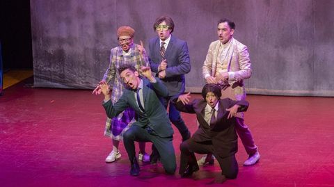 O curioso é que son moi respectuosos co texto. Quizais por iso dure tanto. Dúas horas entre obra e ocorrencias que buscan a complicidade do público mencionando lugares comúns como Razo e Baldaio, ou Malpica de Bergantiños. Vese que se documentaron porque chegan a falar de Transportes Finisterre e da escasa puntualidade coa que funcionan. Recurso que recorda a Yllana ou Ron Lalá. Menos mal que non citaron a docería Vella. E iso que estiveron aquí en 2015 cun Otelo representado con ese mesmo ritmo frenético e a mesma exaxeración expresiva coa que actúan en Medida por medida.