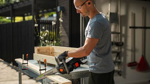 A motosierra Aspire C15X-P4A é a última incorporación da gama. Compacta e lixeira —só 3,5 kg con batería e espada— permite traballar con comodidade incluso en espazos reducidos. O seu motor sen escobillas (brushless) e a velocidade de cadea de 15 m/s garanten cortes precisos e limpos, mentres que o tensado de cadea sen ferramentas e o panel dixital facilitan o seu uso e mantemento. Ideal para pódaa de árbores pequenas ou proxectos de bricolaxe na casa.
