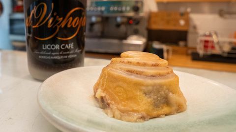 El proceso es meticuloso: el licor café se quema previamente para evaporar el alcohol, integrándose después en la masa junto al relleno tradicional de mantequilla, azúcar y canela. El toque final llega con un glaseado elaborado también con licor café, que aporta un matiz aromático y ligeramente amargo que equilibra la dulzura del conjunto.