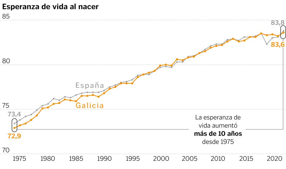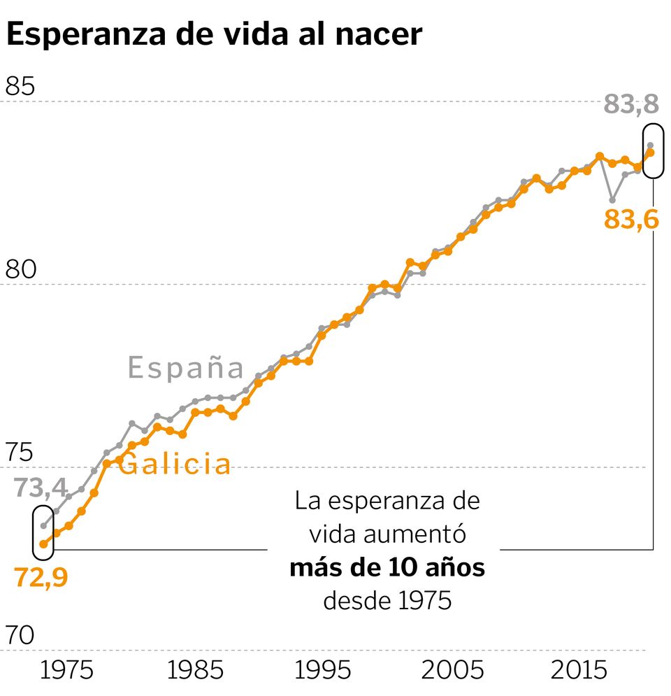 Entre as inevitables consecuencias do progreso está que vivimos máis. O máis probable é que un bebé que viñese ao mundo en 1975 chegase a cumprir pouco máis dos setenta. Hoxe, o tamén máis probable é que, de media, poida vivir dez anos máis. A esperanza de vida é un dos moitos indicadores que serve para medir o desenvolvemento dos países. En España, esa media acada os 83 anos para o conxunto de homes e mulleres.