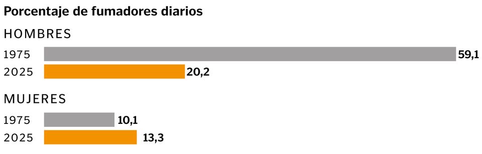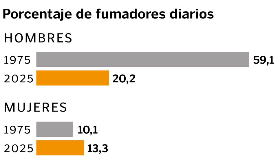 A partir dos anos 90 e especialmente desde a Lei Antitabacos do 2005, prohibiuse fumar en espazos pechados públicos e de traballo, no transporte público e en bares e restaurantes. Polo camiño, a humillante evidencia científica sobre os riscos do tabaco —cancro, enfermidades cardiovasculares e respiratorias— difundiuse masivamente en España e en todo o mundo. Os expertos apuntan a un cambo que é cultural. Hai tempo que fumar deixou de ser un hábito cotián para converterse nunha decisión persoal, consciente e cada vez máis minoritaria. Con todo, as cifras aínda teñen que baixar: un 20% dos homes e un 13% das mulleres consomen habitualmente tabaco.