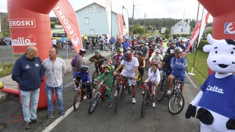 Antes de iniciar el recorrido, los participantes guardaron un emotivo minuto de silencio en recuerdo del joven portero del Meirás, vecino de Valdoviño, fallecido esta misma semana en un accidente de bicicleta en Narón. Y justo después la caravana ciclista tomó la salida desde el campo de fútbol de Vilaboa para disfrutar de un itinerario cómodo y familiar. «Debemos felicitarnos por la gran cantidad de niños y niñas en el Día da Bicicleta», señaló el alcalde, Alberto González, quien también destacó «el gran trabajo de la Policía Local y de Protección Civil, que colaboran para dar seguridad al evento». El regidor puso en valor además «el excelente entorno para descubrir ese Valdoviño interior, con las parroquias de Vilaboa y Loira como protagonistas», y agradeció la acogida del club Rosalía de Vilaboa y la colaboración de la cooperativa local. Entre el pelotón destacaba la pequeña Andrea, la participante más joven, que, con solo cinco años completó el recorrido en su bicicleta mini y, además, se llevó uno de los premios del sorteo final.