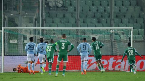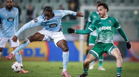 O cadro celeste saíu se cabe máis valente do habitual. Claudio colocou ao seu defensa no centro do campo, tirando o fóra de xogo na divisoria, cambiou a todo o equipo fóra de Ilaix Moriba e encomendou as bandas do 4-4-2 a Jones O-Abdellaoui e Ángel Arcos, que actuaban como extremos. Con este debuxo, ata cinco homes presionaban ao rival na frontal da súa área, pero faltaba intensidade, as liñas estaban demasiado estiradas e desconectadas e quedaba demasiado espazo entre a defensa e Iván Villar, que repetía como porteiro na Europa League. O resultado foi que o conxunto búlgaro fixo o que o Celta quería evitar, que se adiantase no marcador. Foi desde o punto de penalti como Stanic enganando por completo ao porteiro de Aldán. Porque Manu Fernández derrubou a Caio nun balón ás costas e o árbitro non dubidou en sinalar os once metros.