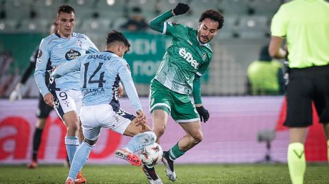 O 1-0 provocou un curtocircuíto no Celta, que co balón era demasiado lento e previsible e na presión exercía de amigo para o rival. Non mordía, o conxunto local movía o coiro con facilidade e superaba a presión do adversario case sen despeitearse e, cando podía, buscaba algún desprazamento longo ás costas das dúas centrais celestes. Nun deses balóns, Yoel Lago fallou no control e Caio plantouse só ante Iván Villar, pero tan doado viuno, que enviou o balón a un palmo do pau.