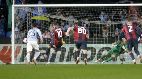 Quedaba un cuarto de hora, pero non houbo resposta por parte do Celta, ao que incluso lle custou superar a liña de medio campo ante un rival que mantiña a presión. En toda a recta final, o único que fixeron os vigueses en ataque foi un par de internadas pola banda dereita cun tiro desviado de Javi Rueda. O Bolonia foi superior, levou o triunfo, e lonxe de selar a clasificación, os vigueses complícanse o play-off.