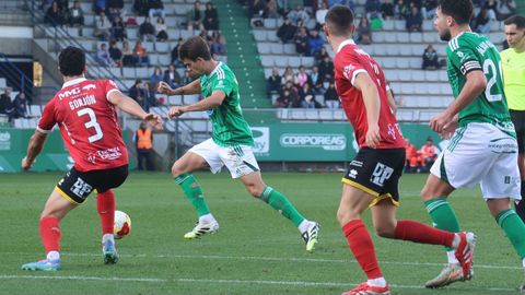 El Racing se adelantó en el marcador a los 36 minutos de juego, un centro de Álvaro Ramón lo aprovecha en el segundo palo Álvaro Giménez, para de cabeza, enviar el balón al fondo de la red y subir el 1-0 al marcador.