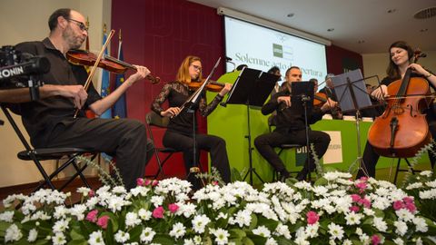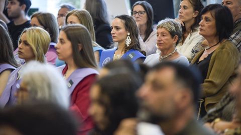 Especial protagonismo tuvo en el acto la música del cuarteto de cuerda del conservatorio de música Manuel Quiroga de Pontevedra. Tocaron tres piezas, una de ellas, el Dancing Queen, de Abba, desató los aplausos del público. También hubo aplausos y silbidos emocionados de familiares cuando los suyos recibían el diploma como titulados. Se entregaron los de grado y máster del curso 2024/2025, empezando por los de ADE y Turismo. Muchos se levantaron para captar el momento con sus teléfonos móviles.