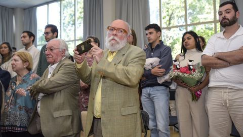 El equipo directivo de la UNED de Pontevedra optó por celebrar el acto de apertura de curso en sábado para facilitar la participación de sus alumnos. Recogieron el guante, probaron el año pasado y repitieron este 2025. El salón de actos, colorido por las bandas de los titulados e intergeneracional por el público presente, se quedó pequeño para abrir el curso. No faltó Eduardo Moreno, que fue tutor hace 50 años. Treinta minutos antes de las 12.00, hora prevista para el comienzo, miembros del equipo directivo daban la bienvenida a los invitados. Pese a la experiencia, alguno no ocultaba sus nervios, deseando que todo saliera bien, como así fue.