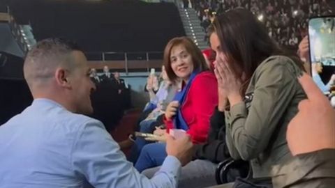 O músico almeriense foi testemuña desde o escenario do momento e non dubidou en felicitar, tamén nas súas redes sociais, á parella. O vídeo suma máis de 450.000 visualizacións