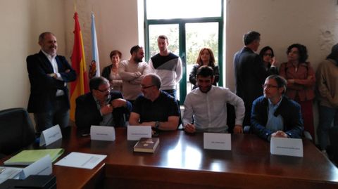 Para iso, recibiu o apoio dos dous concelleiros da Unidade Veciñal (que prometeron o seu cargo ante o libro Sempre en Galiza, de Castelao) e do edil do BNG. Tras o acordo para a investidura, agora quédalles pendente pechar outro para o goberno.