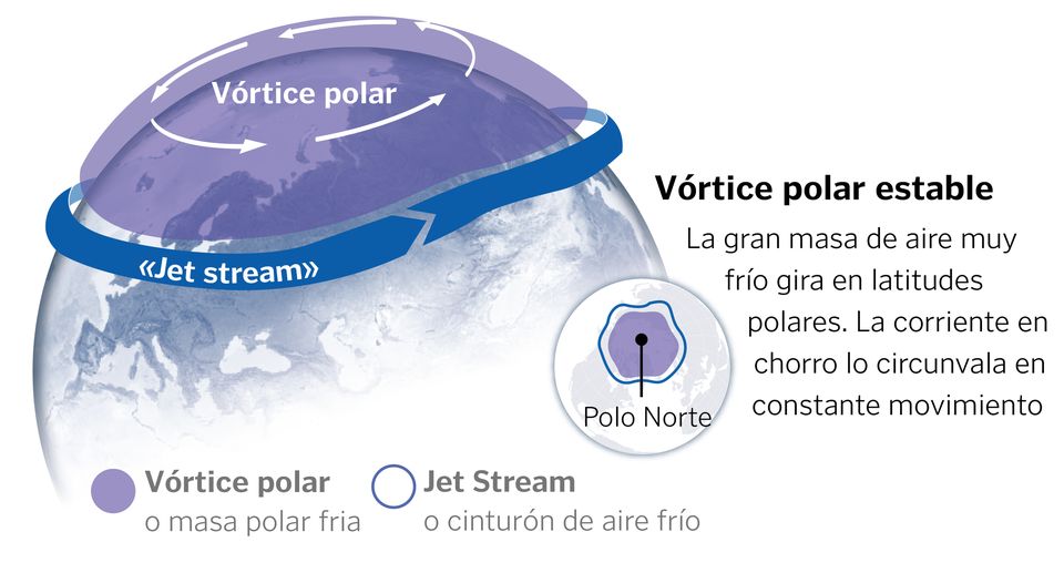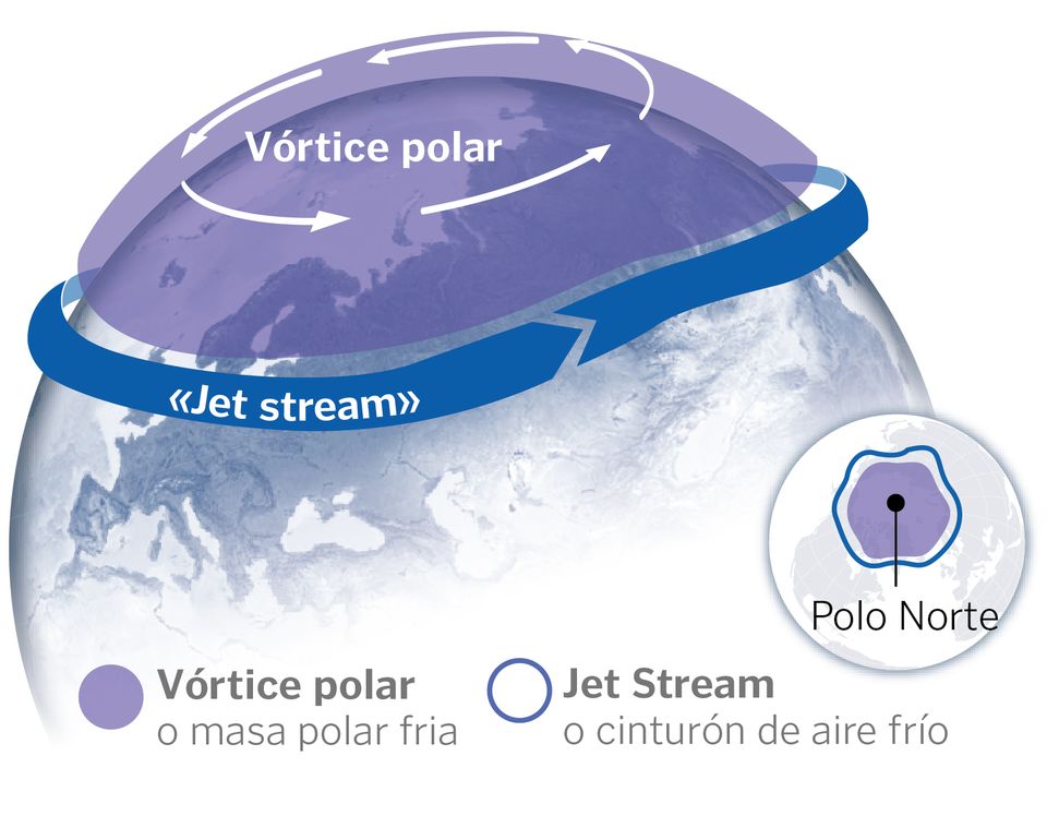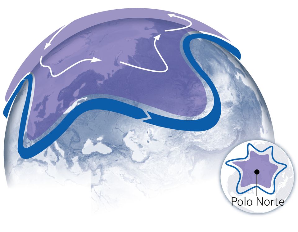 Cando se deforma, afecta á súa vez á corrente en chorro. En lugar de moverse de oeste a leste, adoita configurarse en forma de meandros que canalizan aire polar na ondulación que descende e cálido na que ascende.