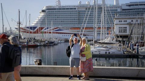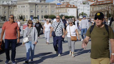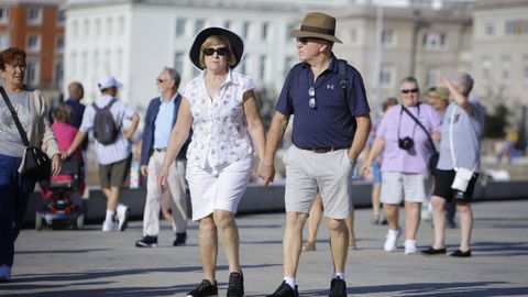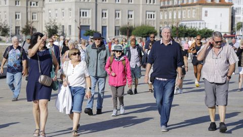 Los casi 12.000 turistas que llegaron este martes a la ciudad en una nueva triple escala llenaron las terrazas de María Pita
