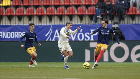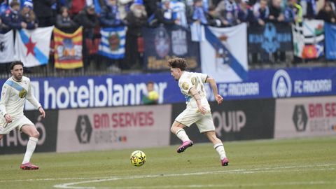 As dous seguintes foron aínda máis claras, pois chegaron tras senllos erros defensivos locais. Tras un erro entre o meta e Gael Alonso, e coa portería libre, Luismi Cruz disparou desde 30 metros, pero a pelota golpeou no traveseiro para quedar aos pés de Zakaria. Leste, completamente só na área, e coa portería apenas ocupada por dous defensas, quixo rematar de primeiras, pero saíulle lastimosamente alto. Case sen tempo para reporse, outro erro do Andorra en defensa deixou a Yeremay correr ata a área, pero esta vez Gael bloqueou o seu disparo no último instante.