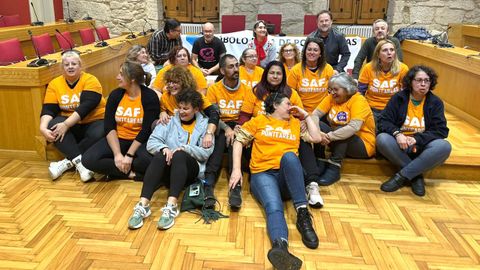Las trabajadoras de ayuda en el hogar de Ponteareas se encierran en el Concello para que rescinda el contrato a la concesionaria