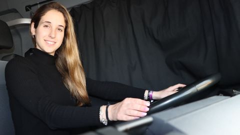 «Son a primeira da familia. E a min sempre me gustou conducir. Desde moi pequena encantábanme os coches e a estrada. E quería dedicarme a algo relacionado con iso. Decidín probar a sacarme o carné e así estou desde hai case dous anos», explica. «Cando llo contei aos meus pais quedaron flipados. Non se lles pasou pola cabeza que quixese ser camioneira. Pero me apoiaron moito desde o primeiro momento», indica este mozo de Barcelona.