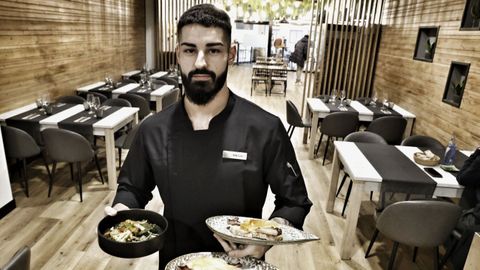 Para axustarse ao límite de presuposto que marcamos nesta reportaxe en Néboa (no número 21 de Valle-Inclán, na capital ourensá) hai que estar atentos aos prezos da carta á hora de elixir. Pero, entre semana, tamén hai opción de pensar menos e comer por 20 euros, grazas a un menú do día que inclúe aperitivo, pan, bebida, sobremesa e café. Esta semana, por exemplo o martes, podíase elixir entre arrincar cunha potaxe de garavanzos, un wok de verduras ou unha tosta de tenreira e queixo de Arzúa e seguir con codillo de porco asado, raviolis de salmón ao pesto ou contramuslo de pito á prancha. E sen cálculos e cun menú redondo que combina pratos tradicionais con outros máis modernos. Distintas formas e un fondo similar para este proxecto de Estéfano Varela, que cambiou a Ribeira Sacra pola cidade dAs Burgas para pór en marcha o seu proxecto culinario. Tróuxose o seu gusto por produtos con raíz, como os queixos galegos ou a vaca rubia galega.