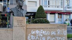 «Goberno de vermellos, época de piollos» é a pintada que este domingo apareceu no monumento; súmase a outros actos vandálicos con consignas contra o BNG e o PSOE