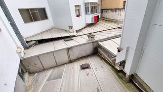 O risco obrigou a un equipo para subir en carlinga para desmontar un enreixado de ferro a escasos metros do mercadillo do Nadal da Alameda e a nora