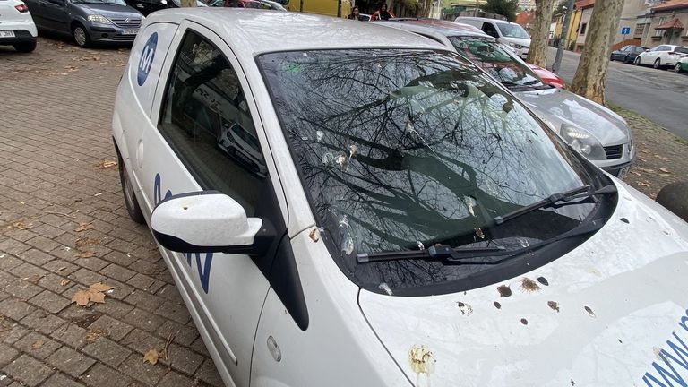 A choiva de excrementos de pégalas que pernoitan en árbores dunha rúa de Lavadores danan os vehículos dos veciños